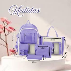Nosso kit infantil 4 em 1 chegou com tudo: mochila grande com espaço para o notebook, estojo, bolsa e uma mini bolsa lateral super versátil