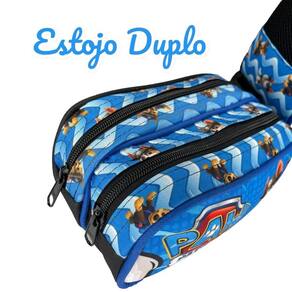 Kit com mochila + estojo duplo + lancheira térmica + toalhinha e garrafinha + quadro decorativo; mochila 2 compartimentos;