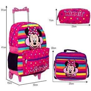 Kit Mochila Feminina Escolar De Rodinha Minnie Com Lancheira