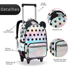 Mochila de Rodinha: Deixe a diversão começar com alças acolchoadas que garantem o conforto durante todo o dia e rodinhas de silicone suaves para deslizar suavemente pelo corredor da escola.