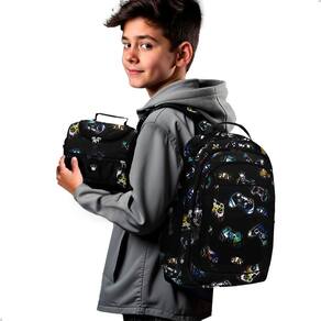 Além disso, a lancheira contém 2 compartimentos, sendo 1 com espaço térmico para manter os lanches fresquinhos. Possui alça de mão e alça transversal ajustável, oferecendo praticidade. Sendo a combinação perfeita para deixar a rotina do a seu ua filho a mais organizada