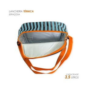 Vem com uma lancheira térmica com espaço suficiente para levar todo lanchinho da criança e mantê-los frescos, tem alça para ser carregada na mão ou no ombro e também vem com alça para encaixe na mochila.