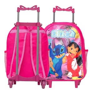 Kit Mochila Infantil Feminina Lilo & Stitch Rodinha Tam G