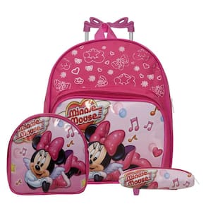 Kit Mochila Infantil Feminina Rodinha Minnie Pequena Passeio