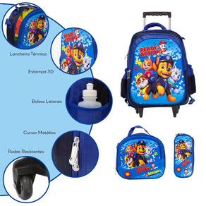 Kit Mochila Infantil Menino Rodinha Patrulha Canina 3D Azul
