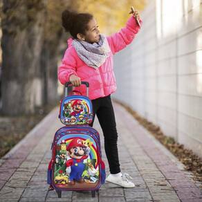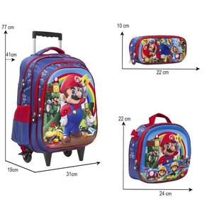 Kit Mochila Infantil Menino Super Mario 3D Rodinhas Tam G