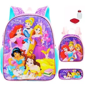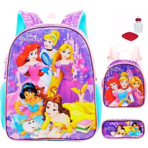 Kit Mochila Infantil Princesas Disney Costas Tam G Escolar