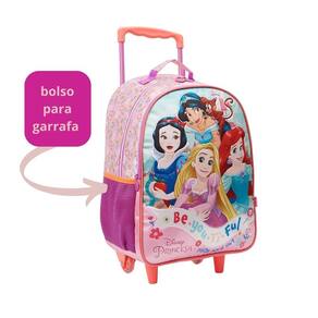 Kit Mochila Infantil Com rodinhas escolar + Lancheira + estojo triplo Princesas