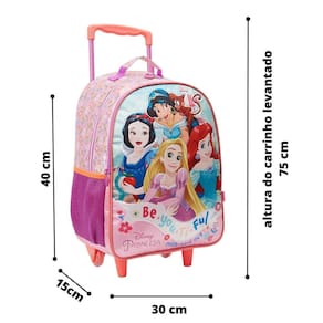 Conheça o Kit Escolar Infantil de mochila de rodinhas, lancheira e estojo triplo Princesas: as pequenas vão adorar viver um conto de fadas na escola ao lado das princesas