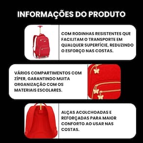 Perfeita para quem valoriza mobilidade e praticidade, esta mochila é essencial para acompanhar a rotina escolar com leveza e estilo. Garanta já a sua e transforme o jeito de carregar seus pertences!