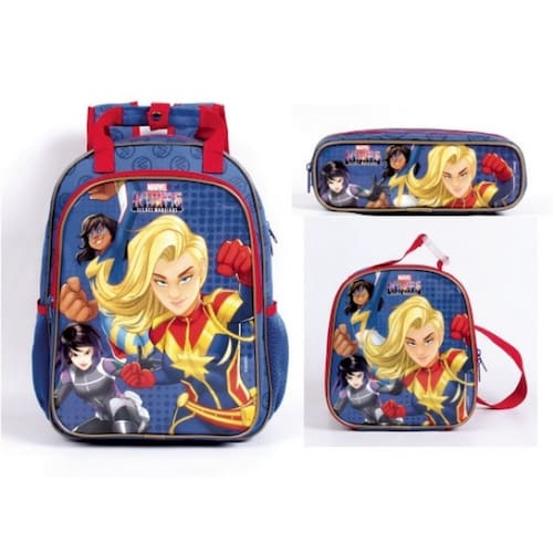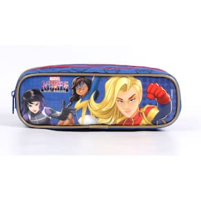 Marvel Rising: Secret Warriors é parte de uma nova franquia de multi-plataforma. A equipe será formada por Kamala Khan, a Ms Marvel; America Chavez, aka Miss America; Garota Esquilo; Quake; Spider-Gwen, que assume o codinome de Ghost Spider; Inferno e Patriota, com a Capitã Marvel de Mentora. A história terá como vilão a personagem Hala.Com os personagens de Marvel Rising Secret Warriors a diversão está garantida! Mochila: Ref: 11465 - Alças de costas acolchoadas e reguláveis; Alças de mão superiores; Dois compartimentos com fechamento por zíper; Bolso frontal em PVC; Confeccionada em poliéster, material resistente e de fácil limpeza; Bolsos laterais em mesh. Medidas aproximadas (AxLxP) em cm: 38x28x14 Lancheira: Ref: 11459 - Confeccionada em poliéster, material resistente e de fácil limpeza; Parte frontal em PVC; Fechamento por zíper; Alças ajustáveis; Acompanha porta lanche e garrafinha. Medidas aproximadas (AxLxP) em cm: 21x20x7 Estojo: Ref: 11458 - É ideal para à volta as aulas, pois possui um amplo espaço; Confeccionado em poliéster, material resistente e de fácil limpeza; Parte frontal em PVC; Fechamento por zíper; Duas divisórias. Medidas aproximadas (AxLxP) em cm: 7x22x8 INFORMAÇÕES FORNECIDAS PELO FABRICANTE