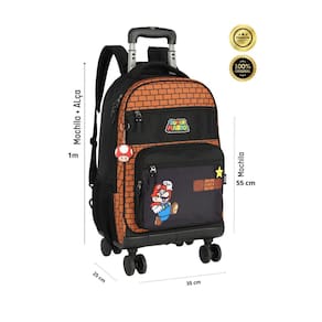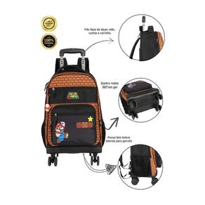 Kit escolar mochila 2em1 costas e rodas+lancheira térmica+estojo box+garrafinha super mario mochila com rodas: Confeccionada em poliéster Fechamento em zíper Puxadores personalizados Compartimentos espaçosos 2 bolsos laterais para garrafa Possui rodas e alças de costas reguláveis e alça de mão Design exclusivo Medidas altura: 50 cm largura: 20 cm comprimento: 30 cm Produzido em poliéster Possui alças de costas Material interno térmico Ziperes com puxadores personalizados Estampa estilizada Não acompanha potinho e garrafinha Dimensões: largura: 22 altura: 20 profundidade: 8cm