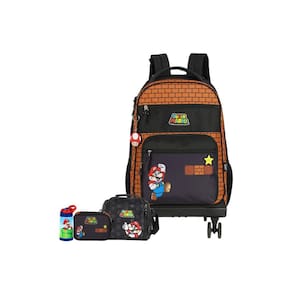 Kit escolar mochila 2em1 costas e rodas+lancheira térmica+estojo box+garrafinha super mario mochila com rodas: Confeccionada em poliéster Fechamento em zíper Puxadores personalizados Compartimentos espaçosos 2 bolsos laterais para garrafa Possui rodas e alças de costas reguláveis e alça de mão Design exclusivo Medidas altura: 50 cm largura: 20 cm comprimento: 30 cm Produzido em poliéster Possui alças de costas Material interno térmico Ziperes com puxadores personalizados Estampa estilizada Não acompanha potinho e garrafinha Dimensões: largura: 22 altura: 20 profundidade: 8cm
