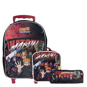Kit Mochila Lancheira Estojo Naruto Akatsuki Rising 978J01 Esteja preparado para a escola com o incrível kit escolar do Naruto Composto por uma mochila de carrinho, estojo e lancheira, este conjunto traz estampas vibrantes dos grandes Hokages - Tobirama, Hashirama, Hiruzen, Minato e Naruto. Mochila de Carrinho: Feita de material durável, a mochila de carrinho possui um amplo espaço interno para acomodar livros, cadernos e outros materiais escolares. O sistema de carrinho resistente facilita o transporte, permitindo que você leve tudo com conforto e praticidade. Estojo: O estojo é ideal para organizar canetas, lápis e outros itens essenciais. Compacto e estiloso, ele complementa o visual do kit e garante fácil acesso aos seus materiais. Lancheira: Mantenha seus lanches frescos e saborosos na lancheira térmica. Com um design divertido e espaçoso, ela é perfeita para transportar sanduíches, frutas e bebidas, para que você esteja sempre preparado para uma pausa revitalizante. Este kit combina estilo, funcionalidade e amor pelo mundo ninja, tornando cada dia na escola uma verdadeira aventura Medidas da Mochila: Altura: 48 cm Largura: 31 cm Profundidade: 13 cm Medidas da Lancheira: Altura: 23 cm Largura: 20 cm Profundidade: 10 cm Medidas do Estojo: Altura: 8 cm Largura: 20 cm Profundidade: 7 cm Especifricações: Marca: Pacific Tipo de Venda: Kit Contém: 3 Peças Tema: Naruto Cor Predominante: Azul Garantia : 3 meses contra defeitos de fabricação
