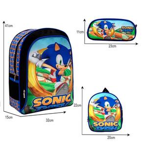 Kit Mochila Escolar Infantil Sonic Dash, acompanha lancheira e estojo. Possui alça de mão reforçada. Agora você pode levar sua mochila no seu dia a dia ou acompanhar você na escola. Sua abertura maior se dá por zíper com puxador. Na parte de dentro possui amplo espaço para a guardar diversos materiais como cadernos, livros e estojos. Na parte da frente, possui bolso com zíper para a guardar pertences de menor tamanho e bolsos laterais.