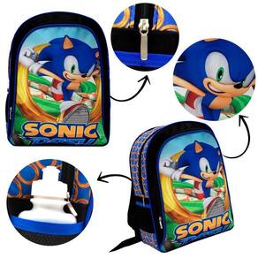 Kit Mochila Escolar Infantil Sonic Dash, acompanha lancheira e estojo. Possui alça de mão reforçada. Agora você pode levar sua mochila no seu dia a dia ou acompanhar você na escola. Sua abertura maior se dá por zíper com puxador. Na parte de dentro possui amplo espaço para a guardar diversos materiais como cadernos, livros e estojos. Na parte da frente, possui bolso com zíper para a guardar pertences de menor tamanho e bolsos laterais.