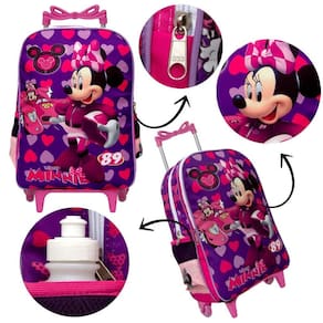 Kit Mochila Escolar Infantil Minnie Mouse Rodinhas, acompanha lancheira e estojo. Possui alça de mão reforçada. Agora você pode levar sua mochila no seu dia a dia ou acompanhar você na escola. Sua abertura maior se dá por zíper com puxador. Na parte de dentro possui amplo espaço para a guardar diversos materiais como cadernos, livros e estojos. Na parte da frente, possui bolso com zíper para a guardar pertences de menor tamanho e bolsos laterais.