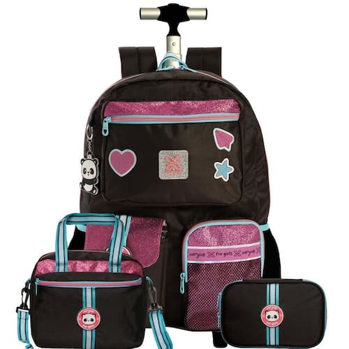 Compre agora o kit mochila com rodas 16 utility panda glitter e transforme a volta às aulas em um momento especial