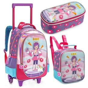 Kit Mochila Com Rodas Lancheira E Estojo Game Pk Feminina