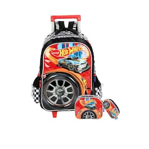 Kit Escolar Mochila com Rodas+Lancheira Térmica+Estojo Triplo Hot Wheels