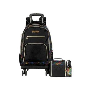 Kit mochila 2em1 costas e rodas + lancheira térmica + garrafa harry potter mochila rodas: Confeccionada em poliéster Fechamento em zíper Puxadores personalizados Compartimentos espaçosos 2 bolsos laterais para garrafa Possui rodas e alças de costas reguláveis e alça de mão Design exclusivo Medidas aproximadas: Altura: 55 cm Largura: 25 cm Comprimento: 35 cm