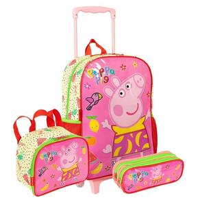 Kit Mochila Rodas Peppa Pig Lancheira Térmica E Estojo Duplo