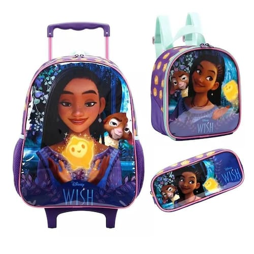 O kit inclui uma mochila com rodinhas, uma lancheira térmica e um estojo, garantindo que as crianças estejam preparadas para a escola, passeios ou qualquer aventura. Tudo o que é necessário em um único conjunto. Mochila: tamanho aproximado: 30cm largura x 38cm altura x 15cm profundidade possui bolsos laterais telados possui compartimento principal amplo painel frontal pvc patch com espuma é produzida em poliéster resistente e estampado. Acompanha puxadores personalizados lancheira: tamanho aproximado: 20 cm largura x 21cm altura x 9cm profundidade alças reguláveis com faixa para acoplar o produto na haste da mala de rodinhas possui compartimento com revestimento em material que ajuda a manter o frescor dos alimentos por mais tempo acompanha puxadores personalizados estojo: tamanho aproximado: 22 cm largura x 10 cm altura x 6cm profundidade compartimento simples para caber o material organizado acompanha puxador personalizado atenção: imagem meramente ilustrativa. Pode ocorrer mudanças no tom da cor da tela do celular/pc para o produto real ou mudanças na embalagem do produto sem aviso prévio por parte do fabricante.