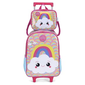 Kit mochila rodinha com alça com lancheira nuvem luxcel kit com mochila de rodinhas com bolsos laterias em tela com elástico, alças de costas espumadas e reguláveis, silk frontal, bolso frontal com zíper, alça de mão. Lancheira estampada com alça de costas e alça de mão, além de etiquetas personalizadas. Dimensões aproximadas: mochila 46 sem haste levantada/75 com haste levantada x 30 x 14cm axlxp / lancheira: 23 x 17 x 8cm lxaxp volume aproximado: mochila 17,5 litros / lancheira: 3,2 litros. Contém: 1 mochila e 1 lancheira atenção: imagem meramente ilustrativa. Pode ocorrer mudanças no tom da cor para o produto real ou mudanças na embalagem sem aviso prévio por parte do fornecedor/fabricante Marca: Não Informado