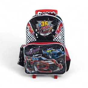 Kit Escolar Perfeito para Meninos - Mochila de Rodinhas, Lancheira e estojo duplo com estampa de carro. Deixe a volta às aulas ainda mais especial com este kit completo, funcional e encantador