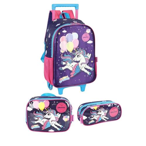 Kit Mochila de Rodinha Juvenil UP4You Unicórnio + Estojo duplo + Lancheira - Luxcel Cor: Rosa