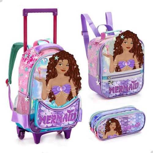 O Kit Mochila de Rodinha, Lancheira e Estojo da Sereia Morena é perfeito para a escola, viagens e passeios. Proporciona uma experiência completa, unindo funcionalidade e magia em um conjunto único. Presenteie as crianças com esse kit encantador e deixe-as mergulhar no mundo das sereias enquanto se divertem e se organizam com estilo e elegância.