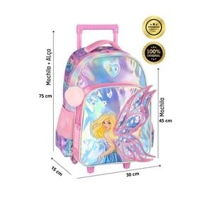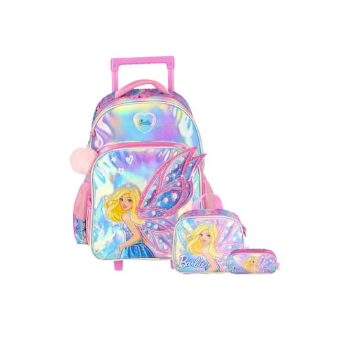 Kit Escolar Mochila De Rodinha+Lancheira térmica+Estojo Triplo Barbie Holográfica: