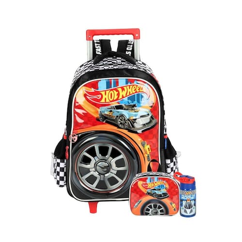 Kit Escolar Mochila com Rodas+Lancheira Térmica+Garrafa Hot Wheels