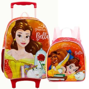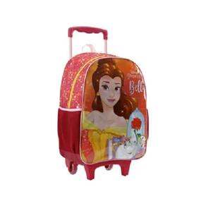 Kit Mochila Rodinha Pequena Lancheira Térmica Infantil Escolar Menina Princesas Bella Xeryus Em tamanho 14, produzida em poliéster resistente e estampado. Painel frontal PVC vincado com detalhes com glitter - Compartimento principal amplo , 2 bolsos laterais mesh, zíper com puxadores personalizados, alça de mão em nylon com poliester e piping forrado. Carrinho em metal com travas. DIMENSÕES: