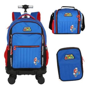 Kit Mochila Rodinhas 360 Lancheira Estojo Super Mario