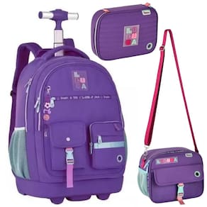Kit mochila rodinhas em nylon oficial luluca lu24599 roxo Kit mochila de rodinhas em nylon oficial luluca lu24599 roxo Com mais de 30 milhões de pandinhas em suas redes sociais e sucesso de vendas no volta às aulas, luluca continua com a clio style e traz uma coleção super estilosa e ligada às tendências de moda. Com design inteligente, pode ser Utilizado tanto como mochila de rodinha quanto como mochila de costas, adaptando-se a qualquer necessidade do dia a dia escolar. O kit de mochila de rodinhas oficial da luluca é confeccionado em poliéster soft com zíper logado, cadarços acetinados coloridos e ilhós personalizado. Compartimentos internos para laptop + tablet para você se organizar ainda mais Tem alça de mão reforçada e de costas acolchoadas e reguláveis, proteção para rodas e alças. O forro da mochila é todo rosa pink, dando um charme extra Acompanha um lindo chaveiro personalizado Essa linda mochila de rodinhas com 19, pode ser Utilizado para escola ou para pequenas viagens, pois seu tamanho é ideal para ir à bordo como bagagem de mão. A lancheira também pode ser Utilizado como frasqueira Mochila - confeccionada em poliéster soft com zíper logado, cadarços acetinados coloridos e ilhós personalizado. - os puxadores dos zíperes são personalizados. - possui compartimento para notebook, duas divisões com bolsos e fechamentos em zíper independentes, bolsos frontais e bolsos laterais telados. - alças acolchoadas para maior conforto. - possui alça de mão reforçada e um compartimento traseiro com fechamento em zíper para guardar as alças de costas. - seu puxador é de modelo de haste única, firme e bem resistente. - rodinhas na parte traseira, com apoio frontal. - na parte traseira, ao abrir o compartimento para usar a mochila nas costas, acompanha um protetor para as rodinhas. - tamanho aproximado sem levantar a haste: 48cm altura x 34cm largura x 21cm profundidade Lancheira térmica - confeccionada em nylon soft, etiqueta de borracha e ilhoes colorido. - lancheiras com bolso externo frontal fechado por fivela e bolsos laterais telados. - possui forro térmico, alças longas reguláveis para usar a tiracolo e amplo espaço para levar seus lanches. - possui alça carona. - material resistente. - acompanha puxadores personalizados. - tamanho aproximado: 23,5cm altura x 20,5cm largura x 14cm profundidade Estojo box - confeccionado em poliéster soft, matelassê, possui puxadores personalizados. - possui compartimento interno com zíper separado para miudezas, elásticos para prender 36 lápis e amplo espaço para outros lápis e material diverso. - esse estojo tem um espaço enorme para caber todo o material muito organizado - o forro do estojo é todo rosa pink, dando um charme extra - tamanho aproximado: 22 x 16 x 6 cm Informação adicional Marca: clio Cód.: lu24599ktrx Cor: roxo Conteúdo do kit: 01 mochila de rodinhas, 01 lancheira térmica e 01 estojo box de 90 dias do fornecedor. Produto oficial licenciado Atenção: as tonalidades das cores do produto podem sofrer variações de percepção, de acordo com a tela do celular ou monitor, e podem variar de acordo com o lote de fabricação.