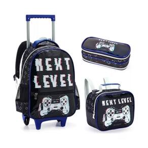 Kit mochila de rodinhas escolar + lancheira + estojo next level gamer Cor: preto Tamanho: único Genero: unissex Kit com 3 peças mochla infantil com carrinho + lancheira termica+ estojo escolar duplo