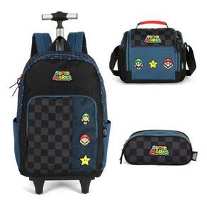 Conte com a facilidade das rodinhas , é muito mais fácil para sua filha transportar a mochila, sem contar que já vem acompanhado com o estojo e lancheira térmica Descrição da mochila com rodinhas - amplo compartimento principal para melhor organização dos cadernos, livros e apostilas; - 1 compartimentos frontais com fechamento em zíper, para pequenos objetos; - dispõe de alça de mão e alça retrátil reforçada para uma melhor locomoção; - alças acolchoadas e reguláveis caso queira transportar no ombro; - puxadores dos zíperes em borracha; - logo emborrachado super mario; - apliques emborrachados; - bolso frontal telado - material: 100% poliéster e forro 100% poliéster. Tamanho/peso da mochila: - altura: 45 cm - largura: 31 cm - profundidade: 16 cm - peso: 1,650 kg Lancheira térmica; As lancheiras são leves, fáceis de limpar e transportar, combinam com qualquer criança e ainda cabem tudo que precisam para a hora do lanche. - alça de mão e alças para carregar no ombro; - fechamento em zíper Tamanho/peso da lancheira; - altura: 23 cm - largura: 20 cm - profundidade: 15 cm - peso: 200 gramas Obs.: não acompanha potinho e garrafinha. Estojo; Lindo estojo com divisórias interna para melhor organização do seu material, ideal para o dia a dia na escola. - altura: 8 cm - largura: 22 cm - profundidade: 10 cm Dicas e cuidados; Proteja os objetos pontiagudos ou cortantes evitando o contato direto com o produto. Guarde o produto e um local seco, fresco e arejado, para evitar a proliferação de fungos que podem danificar o produto. Para limpeza, use apenas água morna e sabão neutro nas partes metálicas somente uma flanela seca. Nunca aplique produtos abrasivos, solventes ou quaisquer agentes químicos. Para secagem, utilize apenas pano seco. Não exponha ao sol e altas temperaturas por um período de tempo prolongado. Apare sempre os fios soltos do tecido, para que eles não se prendam no zíper. Duvida Faça-nos uma pergunta : Marca: Não Informado