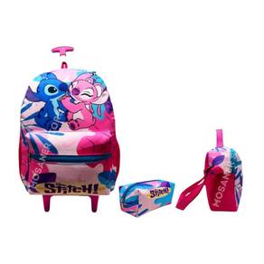 Kit mochila rodinhas feminina infanto juvenil lilo stitch Mochila de rodinhas infanto juvenil feminina lilo e stitch com lancheira térmica e estojo combinando na mesma estampa ideal para escola ou viagem.