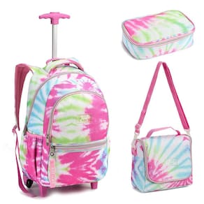 Kit Mochila Rodinhas Feminina Juvenil Adulto Cor Dye tie - Cor: Rosa