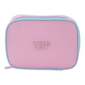 Estojo espaçoso com compartimento único, ideal para guardar lápis, canetas e materiais escolares.