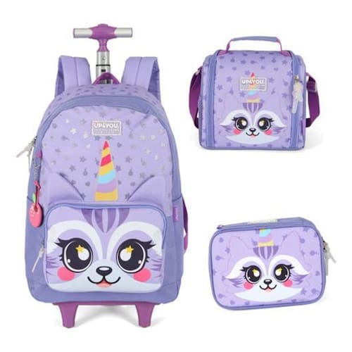 Lançamento escolar volta as aulas 2026 Conte com a facilidade das rodinhas , é muito mais fácil para sua filha o transportar a mochila, sem contar que já vem acompanhado com lancheira e estojo. Descrição da mochila com rodinhas; - amplo compartimento principal para melhor organização dos cadernos, livros e apostilas; - 2 compartimentos frontais com fechamento em zíper, para pequenos objetos; - dispõe de alça de mão e alça retrátil reforçada para uma melhor locomoção; - alças acolchoadas e reguláveis caso queira transportar no ombro; - puxadores dos zíperes em borracha; - logo emborrachado transparente com glitter - chaveiro personalizado - orelhas 3d - lacinho de verdade no modelo de cor verde - material: 100% poliéster e forro 100% poliéster. Tamanho/peso da mochila; - altura: 46 cm - largura: 32 cm - profundidade: 15 cm - peso: 1,500 kg Estojo; Lindo estojo com divisórias interna para melhor organização do seu material, ideal para o dia a dia na escola. - altura: 15 cm - largura: 22 cm - profundidade: 6 cm Lancheira térmica; As lancheiras são leves, fáceis de limpar e transportar, combinam com qualquer criança e ainda cabem tudo que precisam para a hora do lanche. - alça de mão e alças para carregar no ombro; - fechamento em zíper e tampa com fechamento em fita dupla aderente; Tamanho/peso da lancheira; - altura: 23 cm - largura: 20 cm - profundidade: 15 cm - peso: 200 gramas Obs.: não acompanha potinho e garrafinha. de 6 meses contra defeitos de fabricação. Dicas e cuidados; Proteja os objetos pontiagudos ou cortantes evitando o contato direto com o produto. Guarde o produto e um local seco, fresco e arejado, para evitar a proliferação de fungos que podem danificar o produto. Para limpeza, use apenas água morna e sabão neutro nas partes metálicas somente uma flanela seca. Nunca aplique produtos abrasivos, solventes ou quaisquer agentes químicos. Para secagem, utilize apenas pano seco. Não exponha ao sol e altas temperaturas por um período de tempo prolongado. Apare sempre os fios soltos do tecido, para que eles não se prendam no zíper. Duvida Faça-nos uma pergunta : Marca: Não Informado Ean: 6926845711731