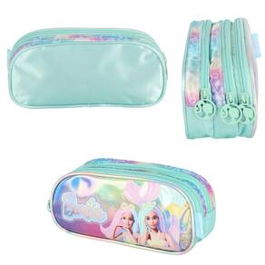 ESTOJO TRIPLO O estojo triplo oficial BARBIE SEREIA é confeccionado em poliéster com a parte da frente em PVC estampado da icônica boneca , com detalhe de viés holográfico, fechamento com zíper e puxadores personalizados - Possui 3 divisões com amplo espaço para lápis e materiais diversos. - A linda estampa da Barbie torna-o um acessório adorável que as crianças vão adorar usar. - Tamanho aproximado: 22 x 10 x 8cm