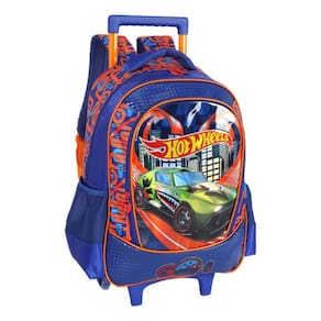 Descrição: Esse lindo kit escolar hot wheels vai fazer sucesso entre a garotada. Esse modelo conta com 2 compartimento principais e dois bolsos laterais para colocar a garrafa. Possui 2 rodinhas de silicone e 2 apoiadores frontais para mantê-la em pé. Sua haste metálica é retrátil. Informações mochila com rodinhas; Medidas: altura: 44cm x largura: 32cm x profundidade: 15cm Pvc holográfico com relevo modelo na cor preto Pu texturizado parte de baixo da frente Logo em pvc relevo Frente em pvc metalizado com relevo modelo na cor azul Peso: 700gr Capacidade: 21l Material: 30% pvc 70% poliéster Altura da alça retrátil fechada: 45cm Altura da alça retrátil aberta: 73cm Informações lancheira térmica; Medidas: altura: 19cm x largura: 23cm x profundidade: 10cm Peso: 300gr Capacidade: 4,370 l Material: 30% pvc 70% poliéster Obs: não acompanha garrafa/potinho Informações estojo triplo; Medidas: altura: 10cm x largura: 22cm x profundidade: 8cm Peso: 160gr Material: 30% pvc 70% poliéster de 6 meses contra defeitos de fabricação. Dicas e cuidados; Proteja os objetos pontiagudos ou cortantes evitando o contato direto com o produto. Guarde o produto e um local seco, fresco e arejado, para evitar a proliferação de fungos que podem danificar o produto. Para limpeza, use apenas água morna e sabão neutro nas partes metálicas somente uma flanela seca. Nunca aplique produtos abrasivos, solventes ou quaisquer agentes químicos. Para secagem, utilize apenas pano seco. Não exponha ao sol e altas temperaturas por um período de tempo prolongado. Apare sempre os fios soltos do tecido, para que eles não se prendam no zíper. Duvida faça-nos uma pergunta :