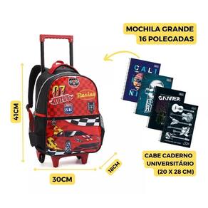 Características: -tamanho adequado para levar os itens de escola. - rodinhas em silicone para garantir a resistência necessária para andar em qualquer terreno.