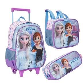 Kit Mochila Rodinhas Infantil + Lancheira + Estojo Frozen