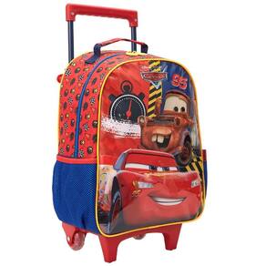 A frente é feita de pvc cristal com vincado, o que confere um toque moderno e diferenciado ao produto. Destaque para a estampa dos personagens relâmpago mcqueen e tom mate, que tornam esse kit de mochila ainda mais especial. Além disso, o modelo conta com hastes com trava para facilitar o transporte e rodas em gel.