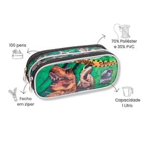 Kit Mochila Rodinhas Lancheira Térmica Estojo Dino Meninos - Seanite Prepare-se para uma aventura jurássica com o Kit Mochila Rodinhas Lancheira Térmica Estojo Dino Meninos Mochila de Rodinhas Dinossauro Perfeita para os pequenos exploradores, este Kit divertido, funcional e cheio de ação traz a emoção do mundo dos dinossauros para o dia a dia escolar. Com um design robusto e rodinhas da mochila que facilitam o transporte, sistema térmico na lancheira e ótima capacidade de armazenamento no estojo é ideal para meninos que adoram dinossauros e precisam de praticidade. Leve a emoção do Jurassic World para a escola com este Kit incrível Características Mochila: - Alça de mão - Alça de costas acolchoada - Bolsos laterais telados - Cores vivas e painel em PVC vinílico - Puxador personalizado - Identificador personalizado Características Lancheira: - Alça de mão - Alça de costas em nylon - Sistema térmico - Cores vivas e painel em PVC vinílico - Fechamento em zíper - Abertura ampla - Identificador personalizado Características Estojo: - Duplo Compartimento - Ampla Capacidade - Cores vivas e painel em PVC vinílico - Fechamento em zíper - Abertura ampla Especificações Mochila: - Marca: Seanite - Capacidade: 19L - Suporte para eletrônicos Polegadas : 17 - Material: Poliéster e PVC - Peso Aproximado: 0,950g - Medidas Aproximadas AxLxP : 42cm x 30cm x 14cm - Tema: Dinossauros Especificações Lancheira: - Marca: Seanite - Capacidade: 4,5L - Material: Poliéster e PVC - Peso Aproximado: 0,220g - Medidas Aproximadas AxLxP : 22cm x 20cm x 10cm - Tema: Dinossauros Especificações estojo: - Marca: Seanite - Capacidade: 1L - Quantidade de lápis: 100 - Material: Poliéster e PVC - Peso Aproximado: 0,100g - Medidas Aproximadas AxLxP : 9cm x 21cm x 5,5cm - Tema: Dinossauros Conteúdo da Embalagem: MR42120 - Mochila Infantil 17 com Rodas Dino Seanite LA42121 - Lancheira Térmica Infantil Dino Seanite ES42122 - Estojo Duplo Infantil Dino Seanite As cores podem variar entre as imagens mostradas acima e o produto. Imagens meramente ilustrativas. Todas as informações divulgadas são de responsabilidade exclusiva do fabricante. de 90 dias contra defeito de fabricação.