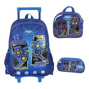 Descrição: Esse lindo kit escolar vídeo game controle up4you vai fazer sucesso entre a garotada. Esse modelo conta com 2 compartimentos principais e dois bolsos laterais para colocar a garrafa. Possui 2 rodinhas de silicone e 2 apoiadores frontais para mantê-la em pé. Sua haste metálica é retrátil. Informações mochila com rodinhas; Medidas: altura: 41cm x largura: 30cm x profundidade: 16cm Peso: 600gr Frente em poliéster e controle em relevo 2 compartimentos grandes Capacidade: 18l Material: 30% pvc 70% poliéster Altura da alça retrátil fechada: 45cm Altura da alça retrátil aberta: 73cm Informações lancheira térmica; Medidas: altura: 19cm x largura: 23cm x profundidade: 10cm Peso: 300gr Capacidade: 4,370l Material: 30% pvc 70% poliéster Obs: não acompanha garrafa/potinho Informações estojo; Medidas: altura: 10cm x largura: 22cm x profundidade: 7cm Peso: 100gr Material: 30% pvc 70% poliéster de 6 meses contra defeitos de fabricação. Dicas e cuidados; Proteja os objetos pontiagudos ou cortantes evitando o contato direto com o produto. Guarde o produto e um local seco, fresco e arejado, para evitar a proliferação de fungos que podem danificar o produto. Para limpeza, use apenas água morna e sabão neutro nas partes metálicas somente uma flanela seca. Nunca aplique produtos abrasivos, solventes ou quaisquer agentes químicos. Para secagem, utilize apenas pano seco. Não exponha ao sol e altas temperaturas por um período de tempo prolongado. Apare sempre os fios soltos do tecido, para que eles não se prendam no zíper. Duvida faça-nos uma pergunta : Marca: Não Informado