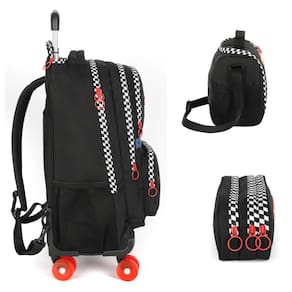 Características: Marca: Luxcel Linha: Hot Wheels Licenciado Mattel Cor: Preto com detalhe de pistas Material: Poliéster Conteúdo do Kit: 1 mochila de rodinhas + 1 lancheira térmica + 1 estojo triplo